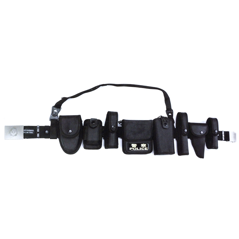 配裝:手銬套、對講機套、強光手電套、警用工作包、警用水壺套、警棍套、手槍套、催淚噴射器套、斜跨帶。警用多功能皮質(zhì)腰帶采用牛皮移膜革制成。警用多功能尼龍腰帶采用阻燃牛津布制成。